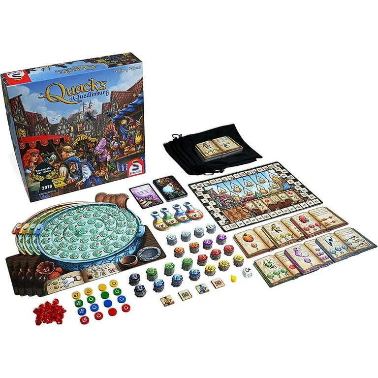 In Quacks, which was first released as The Quacks of Quedlinburg, players are charlatans — or quack doctors — each making their own secret brew by adding ingredients one at a time. Take care with what you add, though, for a pinch too much of this or that will spoil the whole mixture!
